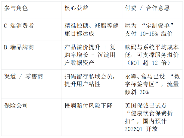 核心逻辑:成本由 “健康溢价” 覆盖,AI 营养师是串联各方的 “价值枢纽”,推动行业从 “低价竞争” 转向 “健康价值竞争”。