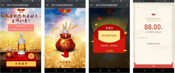基于五码合一,中选科技为白酒企业打造全场景数字化营销体系,实现 “千人千面” 的精准营销。消费者扫码即可参与红包抽奖、积分兑换等互动活动,活动页面可结合节日、品牌节点进行 UI 及奖励定制,增强用户参与感与品牌粘性。例如,通过 “开盖赢红包” 活动,可直接刺激消费者即时购买,同时引导用户关注企业公众号,沉淀私域流量。