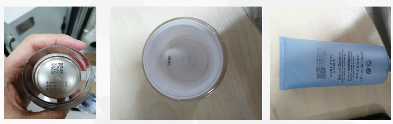激光双码赋码:针对瓶罐类产品(如精华液、面霜),采用 “瓶内底部 + 瓶外底部” 激光打码,双码关联可追溯,抗磨损、无异味,符合化妆品卫生标准,赋码速度可根据产能定制,不影响现有产线效率;