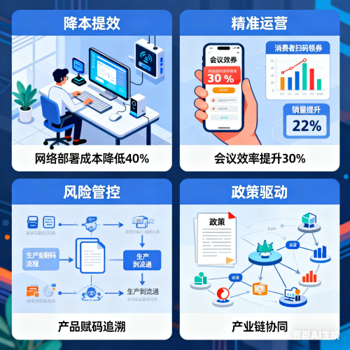 传统企业普遍面临流程冗余、资源浪费等问题,数智化通过自动化与系统整合可精准破局。例如,华为坤灵为中小企业打造的 “4+10+N” 方案,整合智能办公、商业等场景,不仅实现会议多语言实时转写,更帮助企业网络部署成本降低 40%、会议效率提升 30%;中选 HiMarking 为卡士设计的 “电子化奶票” 体系,将核销效率提升 60%,大幅减少人工核算成本与误差。
