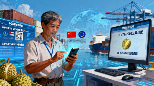 其三,跨境数据互认,打通贸易关键节点。东南亚农产品出口的核心难点之一,是溯源信息无法与目标市场的检验系统对接。HiMarking 一物一码满足与中国 GB/T38158-2019 标准、欧盟 EC 178/2002 法规的系统适配,生成的溯源码可直接被中国海关、欧盟检验机构识别。以柬埔寨榴莲为例,通过 HiMarking 系统,种植户只需一次录入信息,即可生成同时满足中、欧市场要求的二维码,大幅缩短出口流程。
