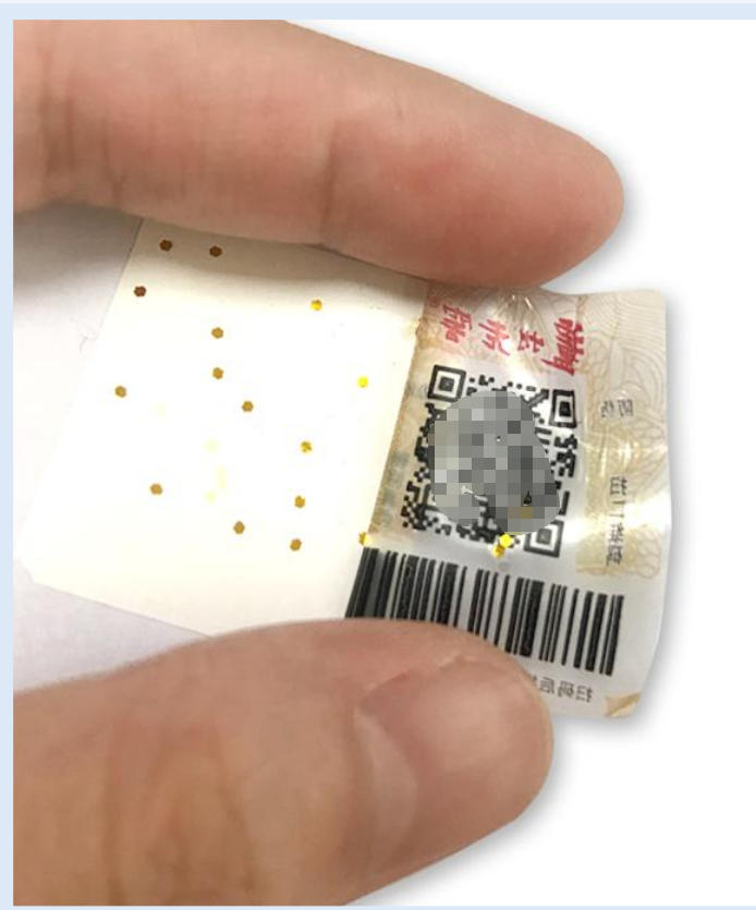 - 孔粒防伪专利:表层揭开后留底呈现与底层颗粒镜像对应的孔洞,实现双向验证,防伪强度极高。