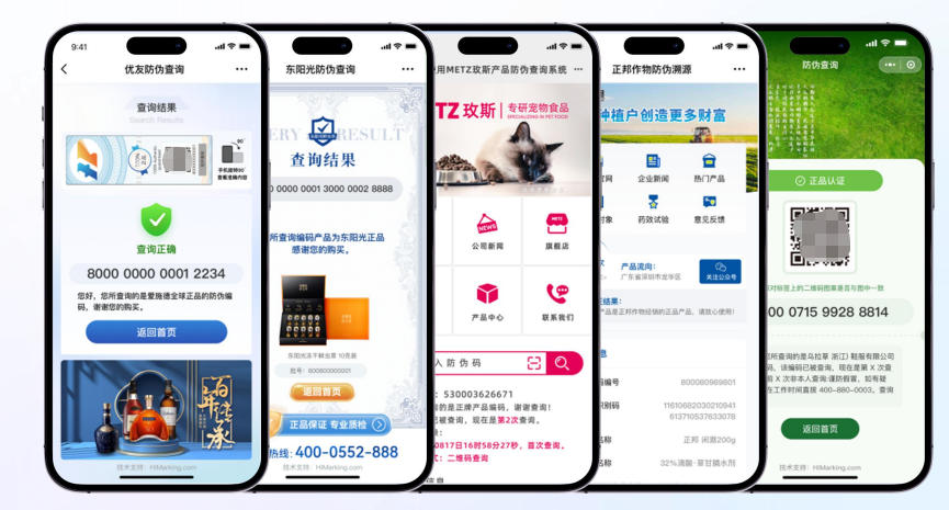 - 溯源防伪双重保障:融合全息 3D 防伪、VOID 防伪、光控液晶分子防伪等物理技术与区块链数字技术,构建 “难以复制、易于查询” 的防伪体系;消费者通过微信、支付宝扫码即可快速验证产品真伪,查看生产批次、原料信息、质检报告等全链路溯源内容,提升购买信心。