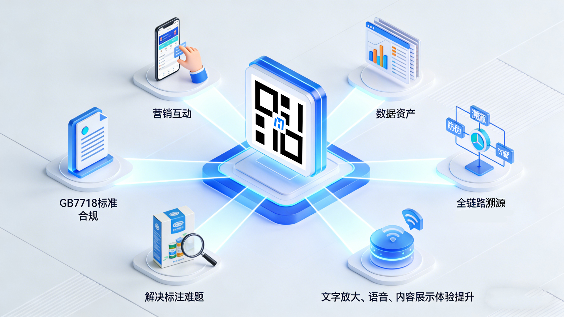 数字标签赋能通过多维度创新实现产品信息管理升级与价值延伸:在合规层面,严格遵循GB7718最新标准要求,助力企业满足政府监管规范;针对传统包装标注痛点,彻底解决小包装信息难全、字小难辨的标注难题,同时降低因包装错印、召回及改版导致的印刷风险与成本损耗;在溯源体系构建上,实现全链路信息正反向追溯,配合检查报告可查功能,显著提升产品公信力;营销维度则开辟用户互动与精准营销新入口,通过智能互动提升用户复购率;数据资产方面,构建用户与市场数字资产库,配套可视化报表分析赋能决策;内容展示突破物理限制,可丰富产品信息、成分说明、使用教学等多元内容讲解;最终通过支持文字放大、语音播报、图文结合的友好体验设计,全面提升消费者信息获取的可及性与便捷性,形成从合规到营销、从溯源到体验的完整价值闭环。