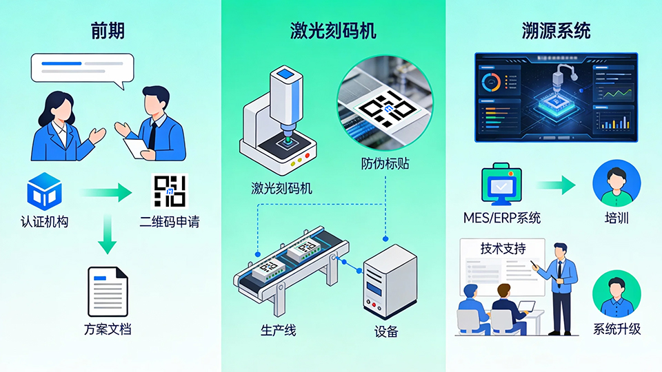 后期:搭建溯源管理系统,实现与认证机构平台、企业现有MES/ERP系统的无缝对接,提供人员培训、技术支持与系统升级服务,保障长期合规。