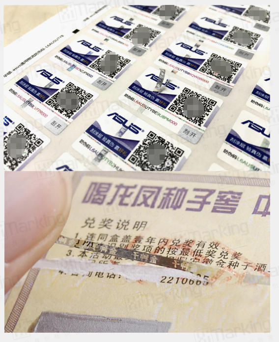 双层结构设计是高安全需求场景的优选方案,表层为明码(物流码),底层为暗码(防伪码),通过 “一明一暗” 的双重防护实现功能叠加。消费者需揭开表层才能获取防伪码,有效避免防伪码被提前盗用或复制。