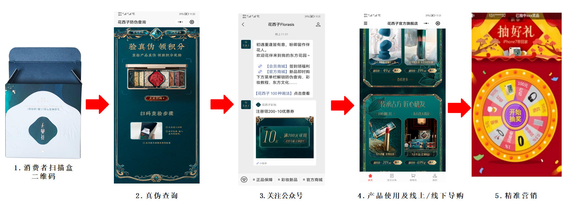 A7:绝对不只是成本项!电子标签是化妆品企业实现数字化转型的关键抓手,可通过四大场景实现增值:① 信任增值:扫码完成防伪验证,解决消费者正品顾虑;② 渠道管控:关联区域授权,通过扫码数据追踪防窜货;③ 品效营销:二级页嵌入品牌故事、使用教程,打造互动触点;④ 数据洞察:扫码数据反哺研发、营销、供应链决策。HiMarking “一物一码” 数字营销方案,正是围绕这四大增值场景打造,让合规成本直接转化为业务增长动力。