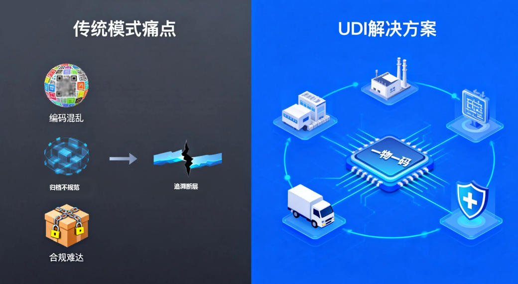 医疗行业耗材管理的精细化需求日益迫切,尤其口腔、外科等领域,耗材品类繁杂、流通链路长,传统模式面临三大核心痛点:一是编码混乱,不同机构规则不一,“一物多码” 导致跨系统数据互通困难;二是追溯断层,生产、流通、临床数据割裂,全流程跟踪与不良事件召回效率低下;三是合规难达,全球监管标准不统一,企业跨境流通需反复适配编码体系。