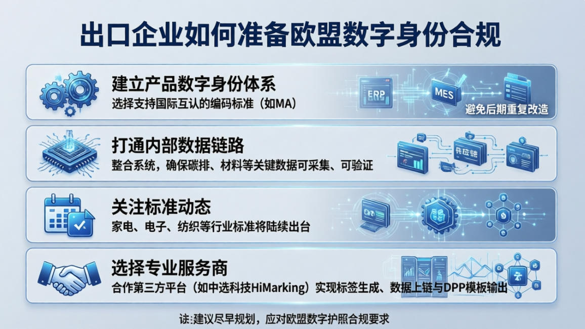 - 尽早建立产品数字身份体系:选择支持国际互认的编码标准(如MA),避免后期重复改造;
