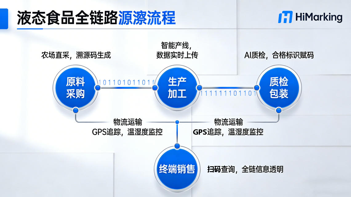 2026年2月9日,市场监管总局发布《重点液态食品道路散装运输联单管理工作规范》,明确要求液态食品运输全过程实施“联单制度”,实现来源可查、去向可追、责任可究。面对新规,企业如何快速响应?中选公司(HiMarking)凭借近二十年一物一码深耕经验,提供从赋码、采集、关联到数据管理的全链路溯源解决方案,助力液态食品企业轻松合规,降本增效,构建品牌信任护城河。
