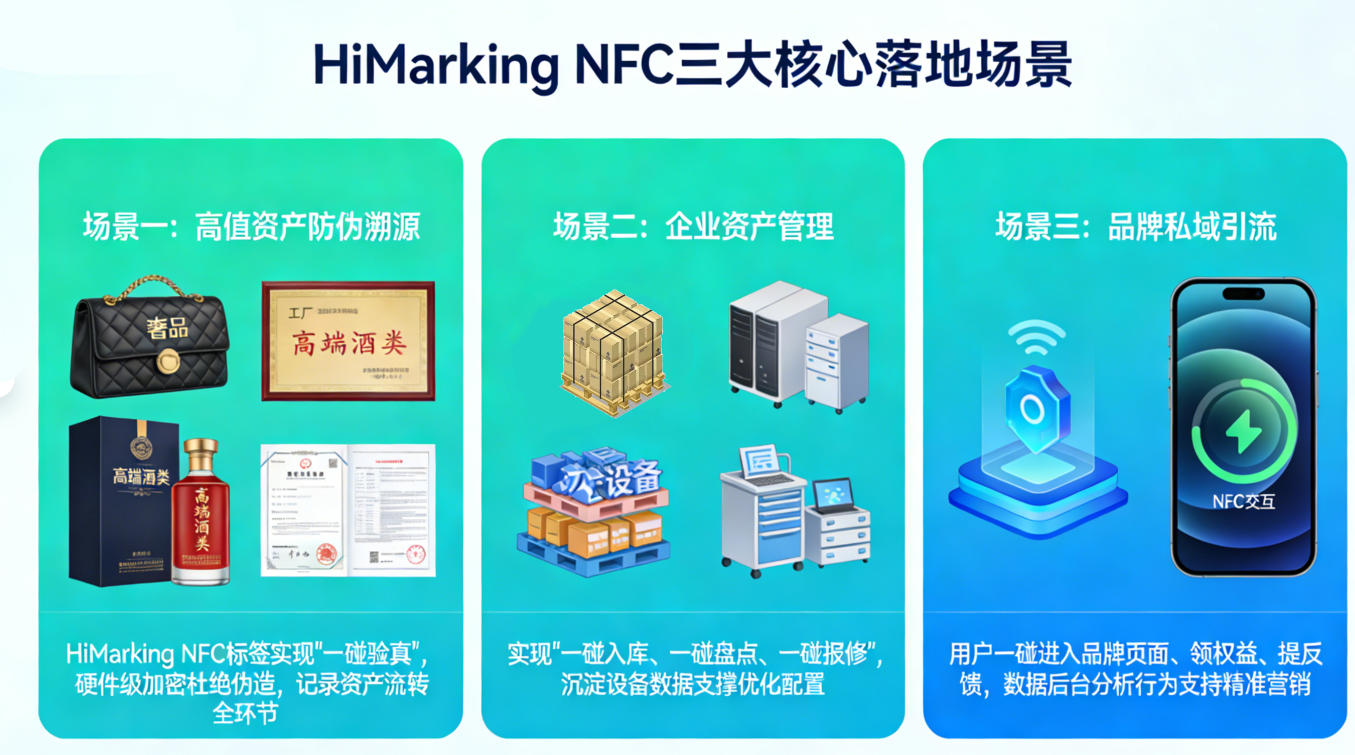 苹果开放NFC后,“全民可触”的交互方式,让NFC的应用场景迎来无限可能。HiMarking基于二十年的行业经验,已明确三大核心落地场景,提前做好技术适配,助力企业快速抓住风口: