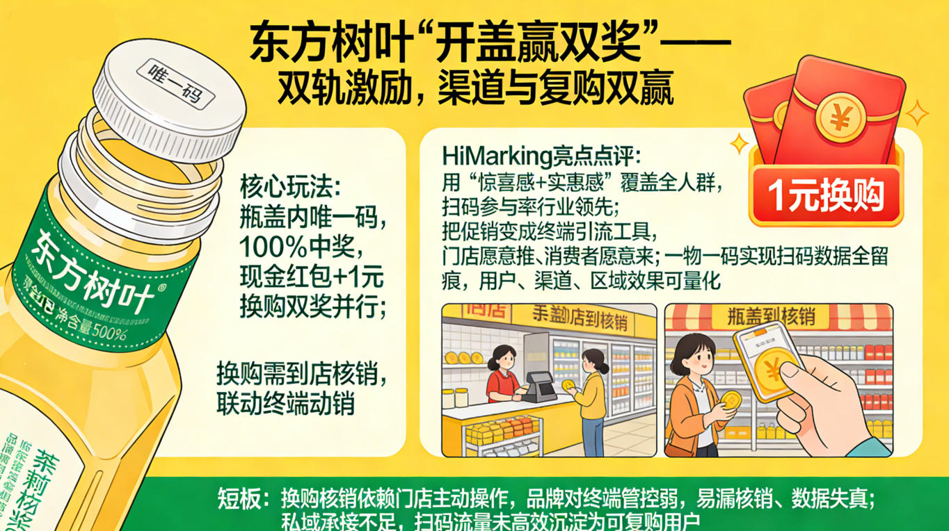 案例一:东方树叶「开盖赢双奖」—— 双轨激励,渠道与复购双赢
