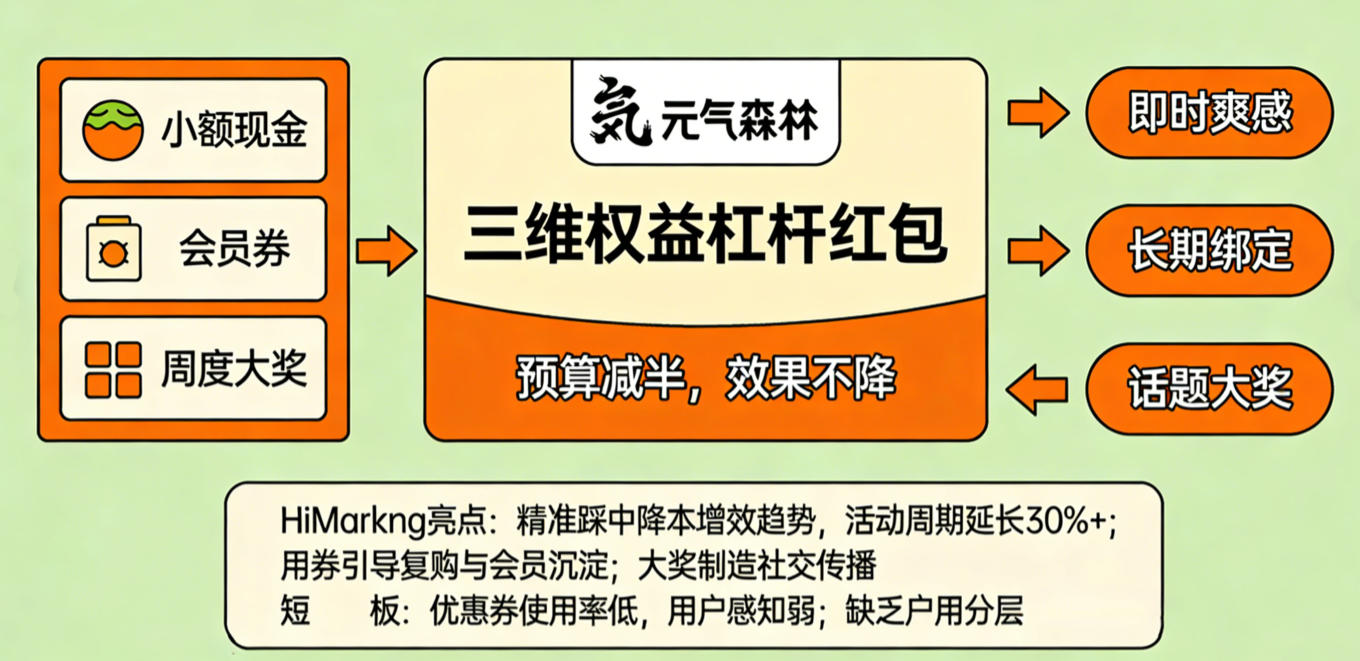 案例二:元气森林「三维权益杠杆红包」—— 预算减半,效果不降