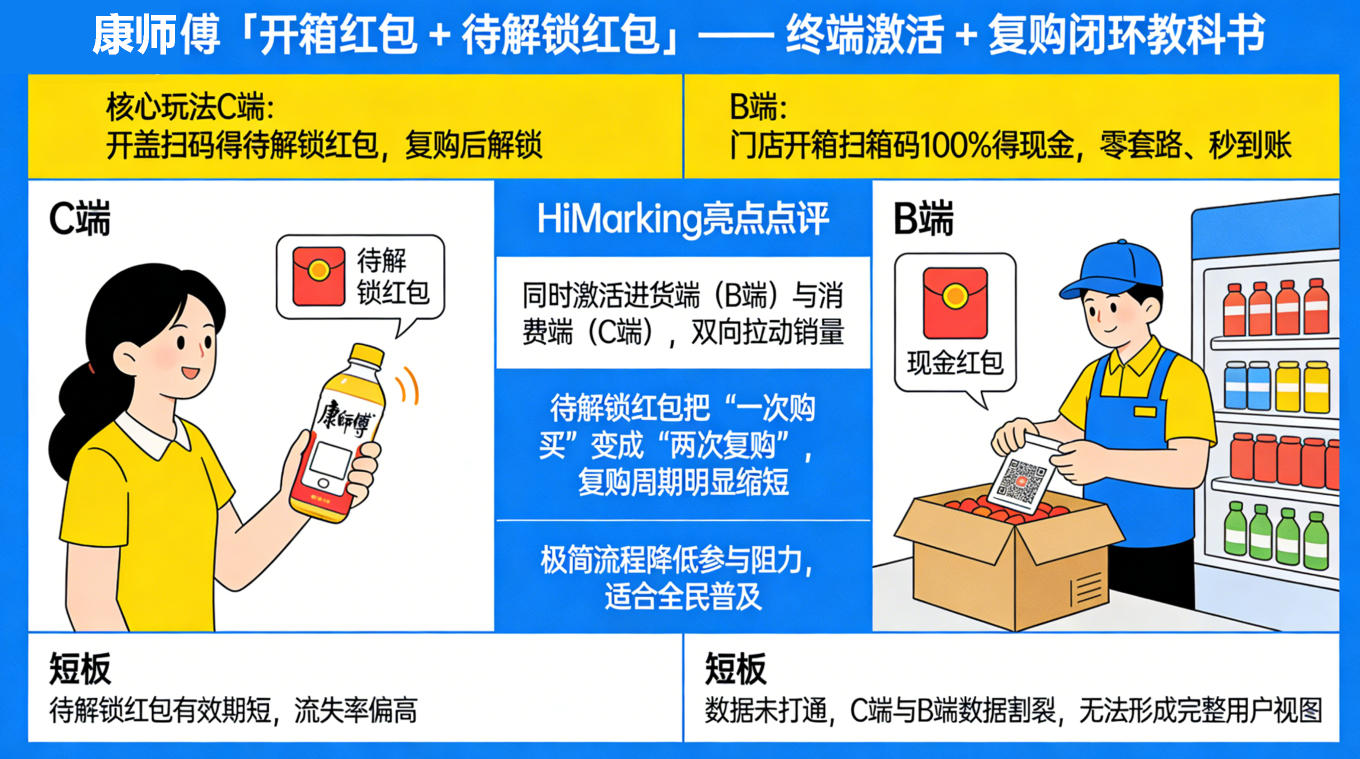 案例四:康师傅「开箱红包 + 待解锁红包」—— 终端激活 + 复购闭环教科书