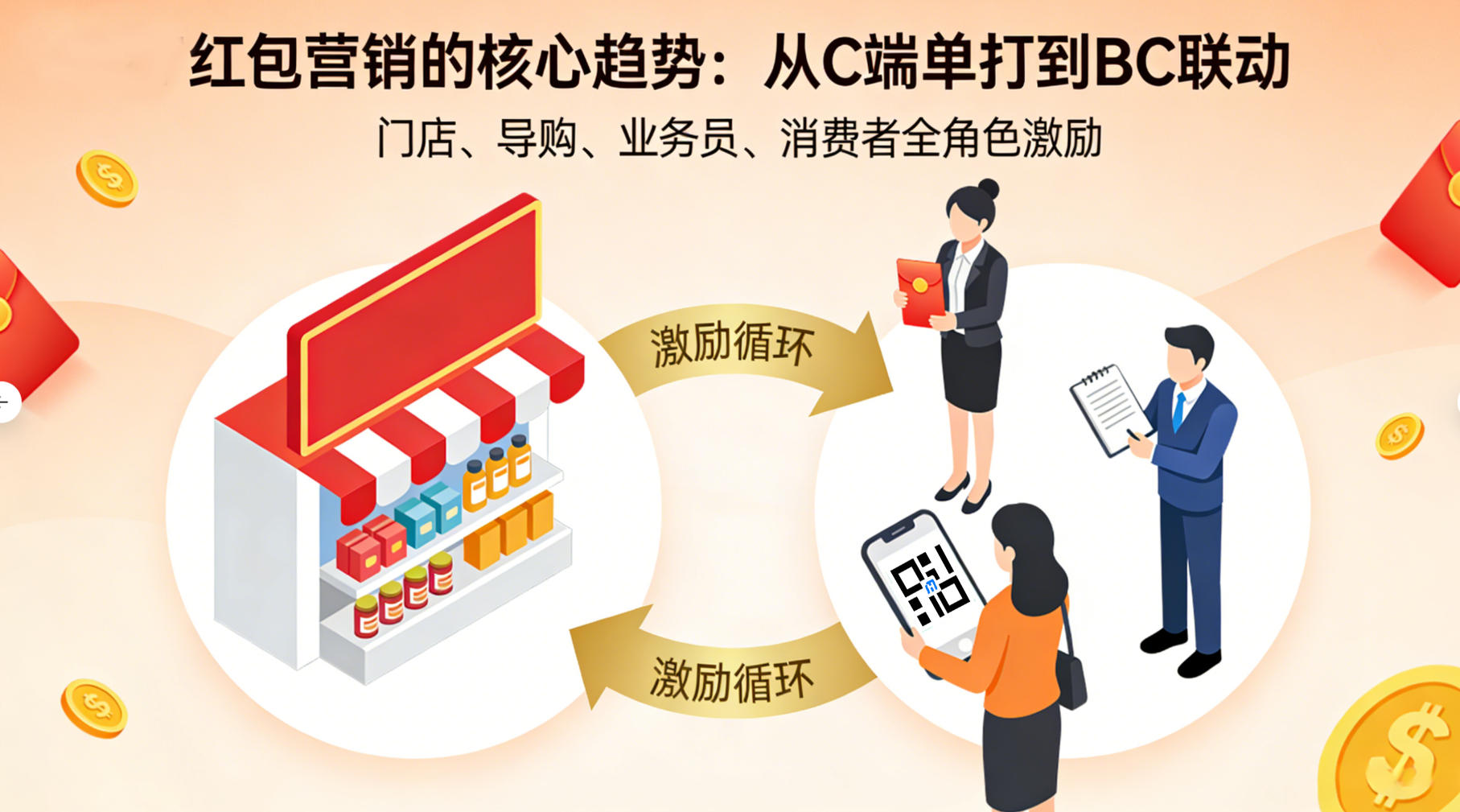 - 把红包从 C 端促销升级为全渠道动销引擎,门店、导购、消费者三方共赢。