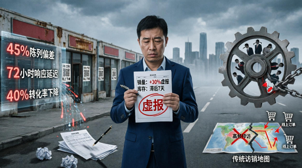 传统访销的核心问题,在于人、数据、流程的底层脱节,且已形成难以突破的恶性循环,这一点在快消、酒水、农牧等强渠道依赖行业尤为突出。数据失真让决策彻底失焦,业务员手工采集的销量、库存数据经层层上报后,不仅滞后成为 “历史信息”,更存在 30% 左右的虚报率,直接影响企业促销预算、生产计划的精准性;工作过程陷入 “黑箱”,业务员巡店的路线合规性、陈列执行度、竞品调研情况无法实时监控,管理只能靠销售结果反推,45% 的终端陈列标准执行偏差成为常态;业务员价值被严重固化,大量时间消耗在填表、盘点等低价值事务,沦为 “高级送货员”,而竞品突发促销时,层层汇报的机制让企业反制策略平均延迟 72 小时,错失黄金应对期。更关键的是,渠道碎片化让传统 “广覆盖 + 高频拜访” 的访销逻辑彻底失灵,30% 的线下门店转向线上下单,线下拜访的实际转化效率下降 40%,单纯的 “勤快跑终端” 已无法触达全渠道触点,传统访销的效率与价值双双触底。