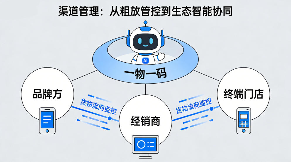作为产业数字化的基础入口,一物一码虽已实现防伪、溯源、防窜货等基础功能,却仍无法成为传统访销的 “解药”。其核心局限在于价值浅、效率低、高度依赖人工:仅停留在事后追溯层面,窜货排查、营销复盘、库存管理均需人工主导,无法实现实时监控与预判;底层数据仅用于记录,难以转化为经营增长的可量化价值,物码作为数字化入口的潜力被严重浪费;渠道管控、扫码营销等环节仍靠经验判断,让企业始终被动应对市场变化,无法从根本上打通访销的全链路数据壁垒。