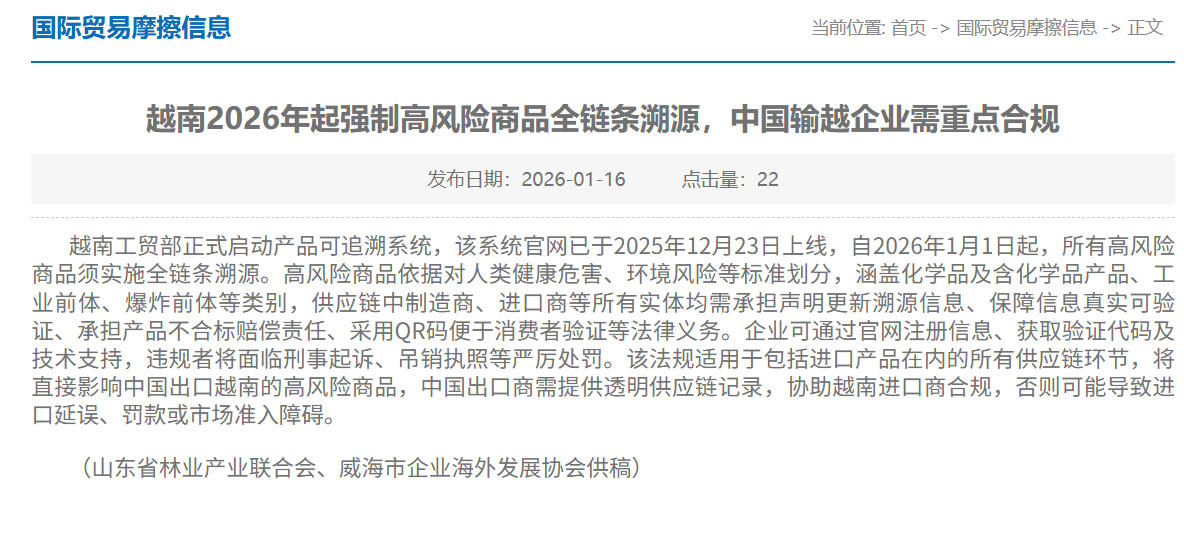 - 系统对接:企业内部追溯系统需与越南工贸部统一系统对接,确保数据真实可查。