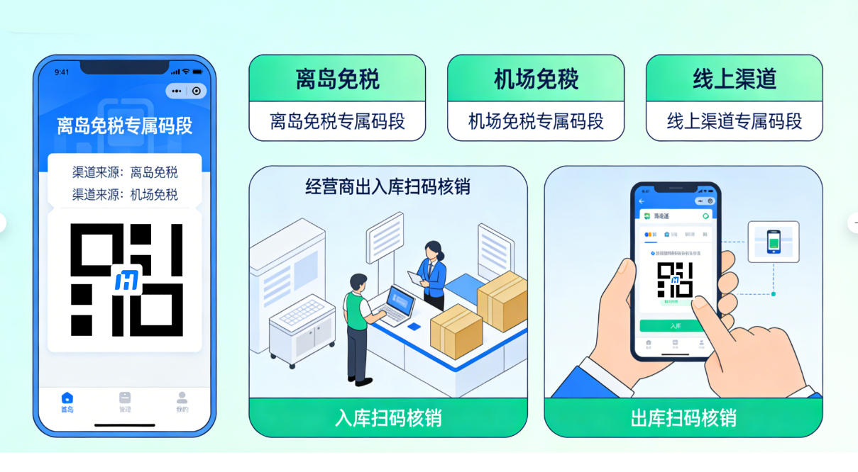 针对中免 “离岛强、机场弱” 的渠道格局,一物一码实现渠道精准区分、流向全程监控: