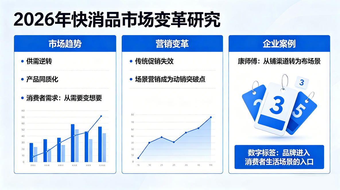 2026年的快消品市场正经历深刻变革。供需关系逆转、产品同质化加剧、消费者从“需要”转向“想要”,传统的促销手段逐渐失效,场景营销正成为突破动销瓶颈的重要途径。