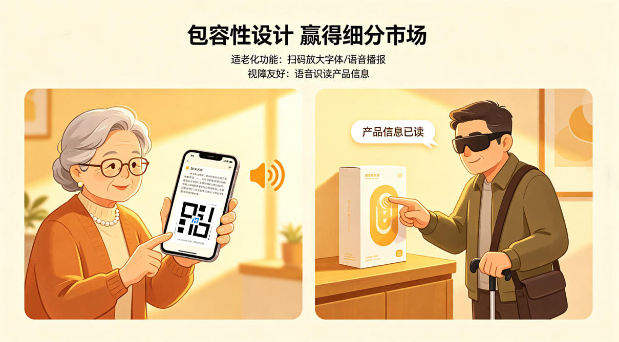 数字标签的音视频功能为服务特殊人群打开了新空间。老年人可通过扫码放大字体或语音播报获取信息;视力障碍者可以通过语音识读了解产品信息。这种包容性设计不仅是社会责任的体现,更是品牌差异化竞争的优势所在。