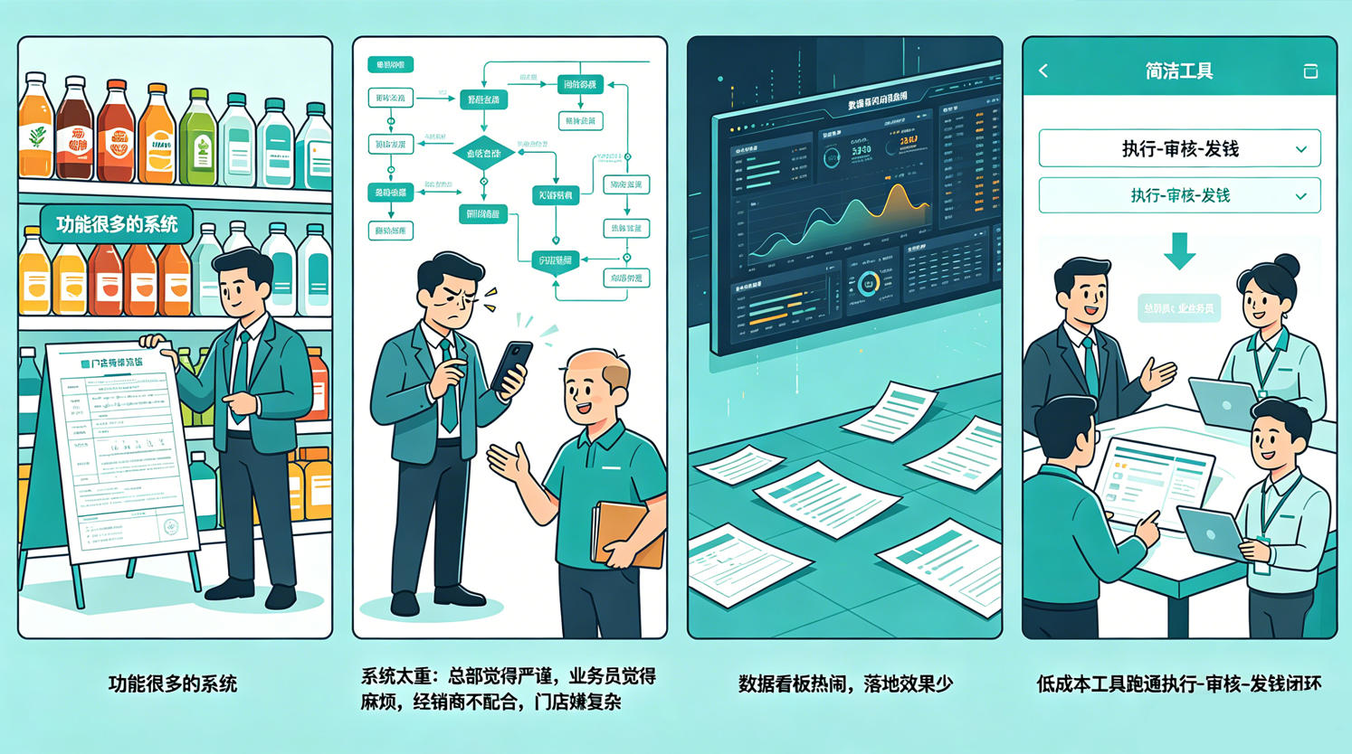 说白了,快消企业尤其是饮料、调味品、日化这类毛利不高的行业,缺的不是一个“功能很多的系统”,而是一个能低成本跑通“执行-审核-发钱”闭环的工具。